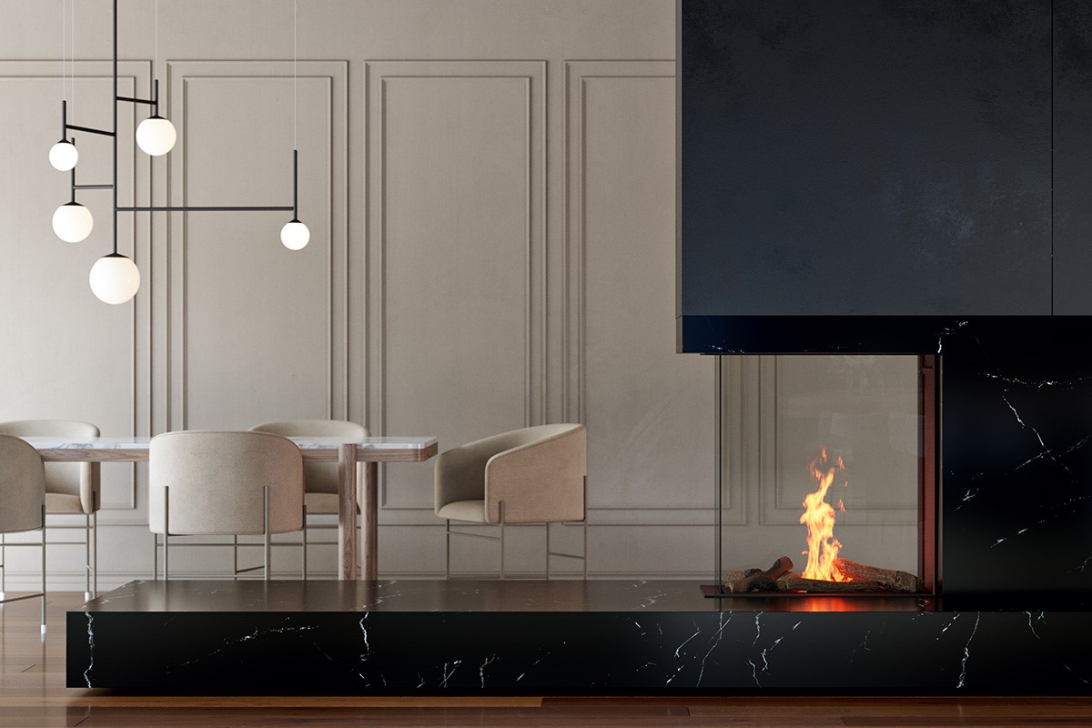 Achterwand: Zwarte staalwand, zwart glas (meerprijs)