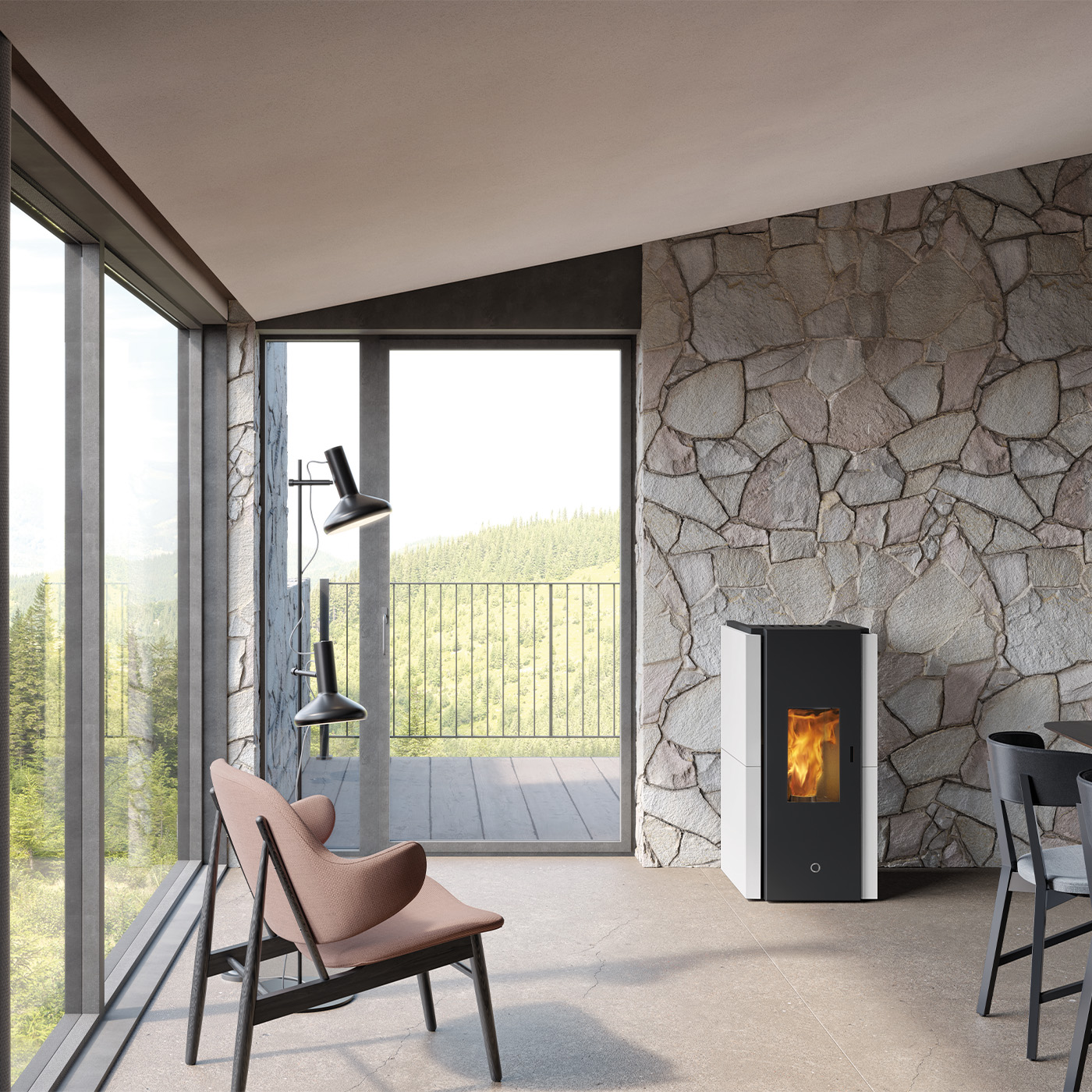 De EK63 Zone80 pelletkachel is een luchtdichte pelletkachel met een modern en elegant ontwerp. Dankzij de ronde vormen heeft deze kachel een speelse, maar luxe uitstraling die perfect past in zowel moderne als minimalistische interieurs. Het grote glasraam zorgt voor een prachtig zicht op het vlammenspel, waardoor sfeer en warmte perfect samenkomen.