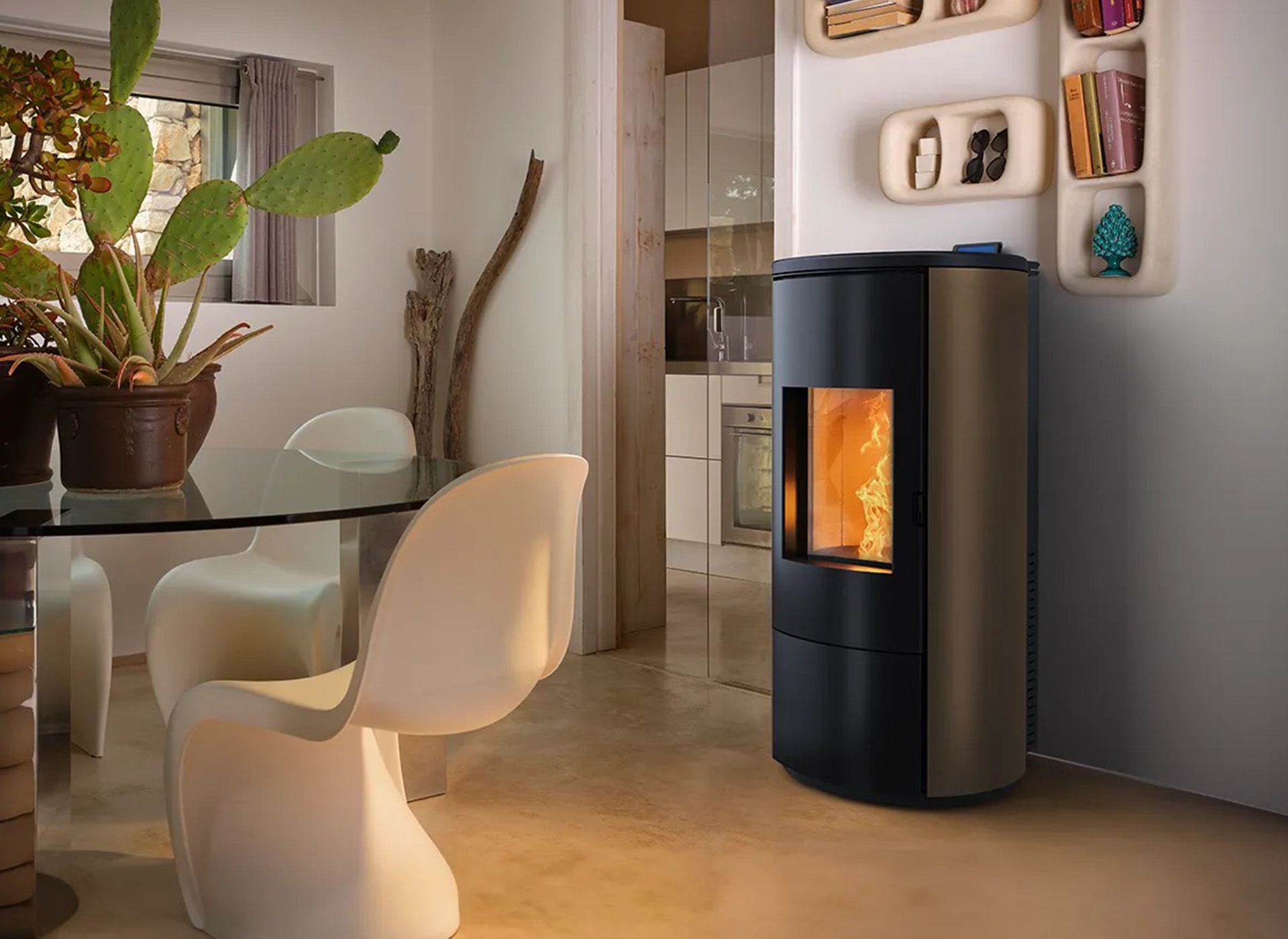 De A10 Round Steel is verkrijgbaar in drie stijlvolle kleuren: wit, zwart en brons, zodat u de kachel kunt afstemmen op uw persoonlijke smaak en interieur. Daarnaast is deze kachel voorzien van een A++ energie-efficiëntielabel, wat betekent dat hij zorgt voor een lagere ecologische voetafdruk. Met een brushless gearmotor voor stille, efficiënte werking, optionele wifi kit en een self-cleaning brazier voor minimaal onderhoud, is deze kachel niet alleen mooi om te zien, maar ook nog eens praktisch in gebruik.
