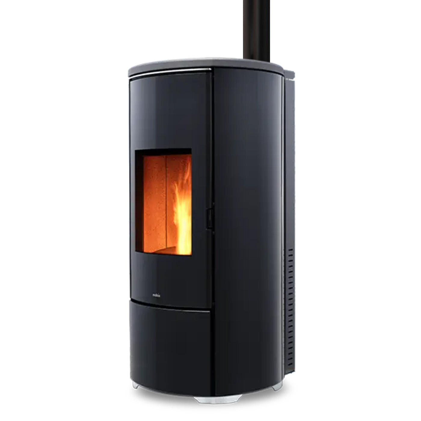 De Nobis A10 Round Top Glass is een stijlvolle pelletkachel die ronde vormen combineert met moderne glasafwerking en geavanceerde technologie. Dit model is voorzien van een bovenafvoer, waardoor hij flexibeler geplaatst kan worden en ideaal is voor situaties waarin de rookafvoer beperkt is. Met een royale pelletcapaciteit van 15 kg geniet u van een constante warmte in ruimtes tot 233 vierkante meter, perfect voor grote woonkamers of open woonruimtes.