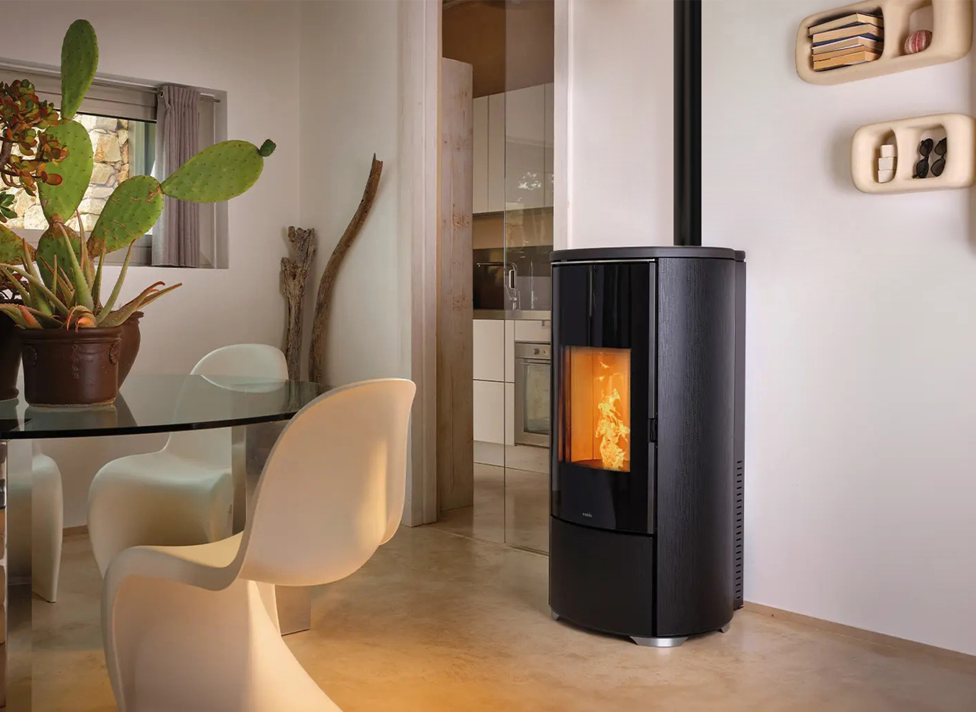 De A10 Round Top Glass is verkrijgbaar in vier elegante kleuren: Carbon, Zilver, Zwart glas en Wenge. Zo kunt u deze kachel perfect afstemmen op uw interieur. Daarnaast is deze kachel standaard voorzien van wifi, een brushless gearmotor voor een stille, efficiënte werking en een self-cleaning brazier, waardoor het onderhoud minimaal blijft en de verbranding altijd optimaal is.