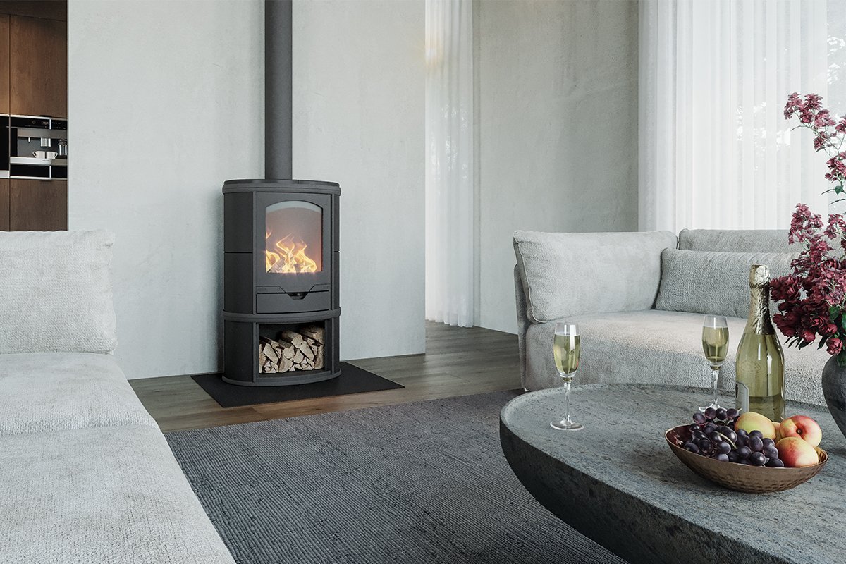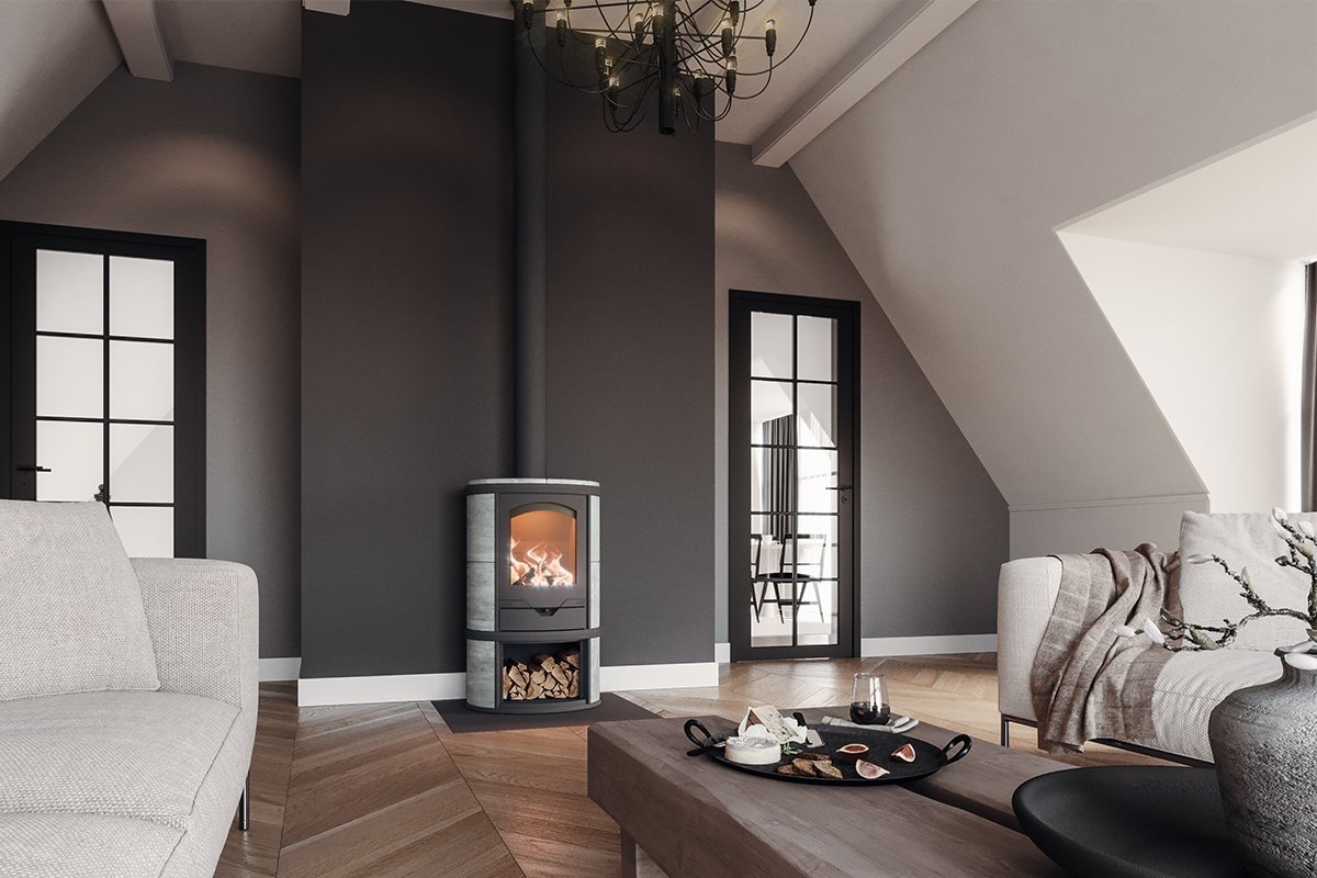 De rookgassen in deze houtkachel worden opgevangen en door rookgaskanalen geleidt die bij het basismodel al meer dan 2 meter lang zijn. Hierdoor krijgen de rookgassen meer tijd om hun warmte af te geven aan het speksteen.