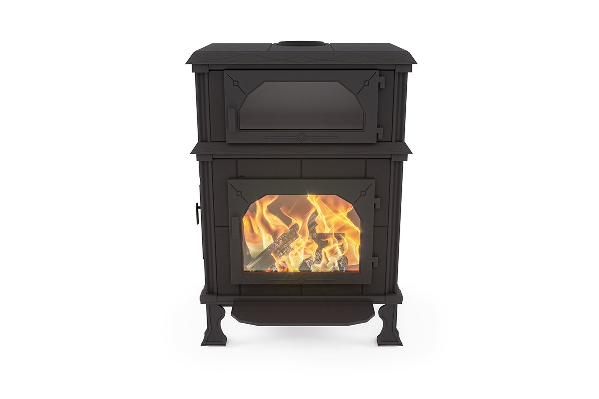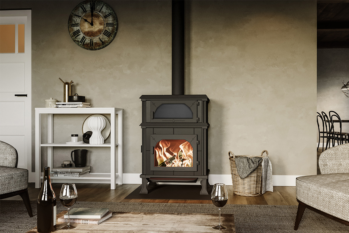 Deze kachel kan zowel vanaf boven als vanaf achteren worden aangesloten en de kookplaat is optioneel.