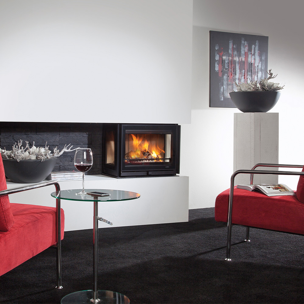 De Wanders Square 60 driezijdig is een moderne, lichte houthaard met van drie kanten zicht op de vlammen. Omdat je het vuur door het glas van alle kanten in de kamer ziet, is het optimaal genieten met deze haard.