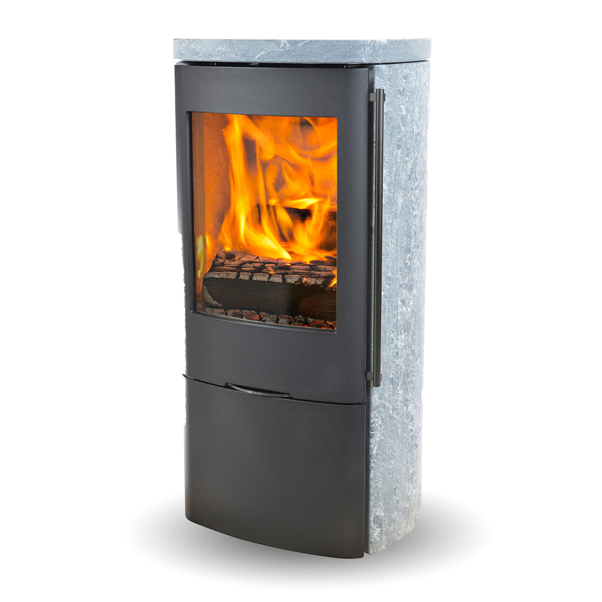 De Senza Soapstone (speksteen) modellen hebben panelen van natuurlijke speksteen. Dit geeft de kachel een robuust, gezellig uiterlijk en biedt unieke voordelen: