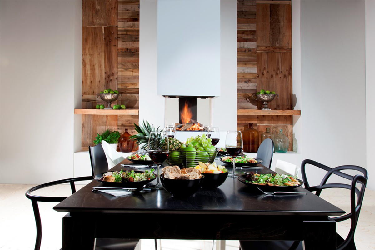 Zwarte staalwand, optioneel met meerprijs ceraglass |