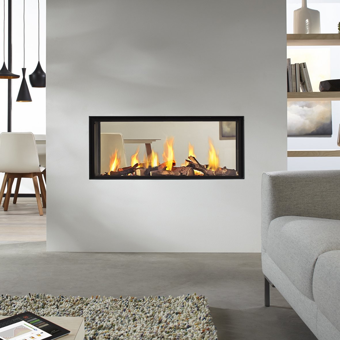 De DRU Metro 100XT Tunnel gashaard maakt het mogelijk aan twee zijden te genieten van het vuur en is daardoor uitermate geschikt als roomdivider.