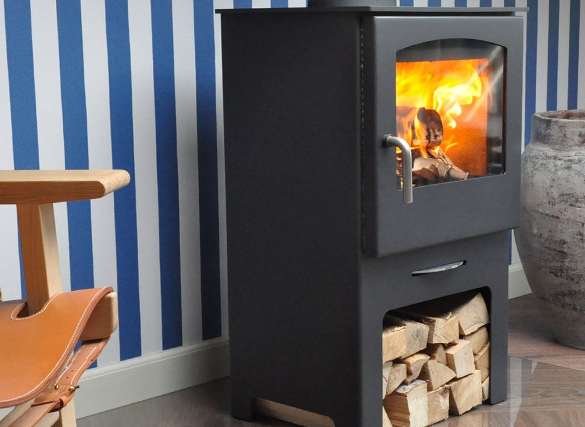 Vrijstaande stalen houtkachel met tijdloos design