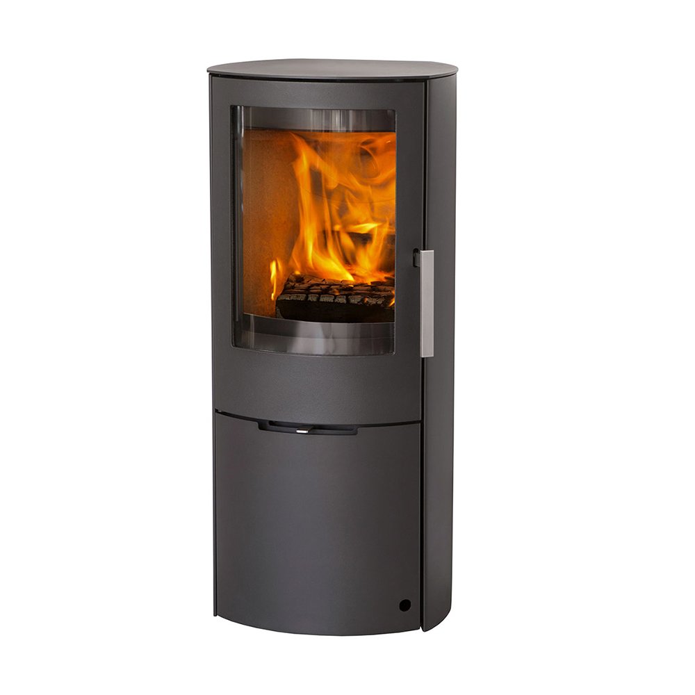 De Mido is uitgerust met grote gietijzeren deuren, waarachter een handige aslade verborgen zit. Het grote gebogen glas biedt een indrukwekkend zicht op de verbrandingskamer, zodat u optimaal kunt genieten van het vuur en de warmte. Dit maakt de kachel niet alleen functioneel, maar ook een prachtige eyecatcher in uw woonkamer.
