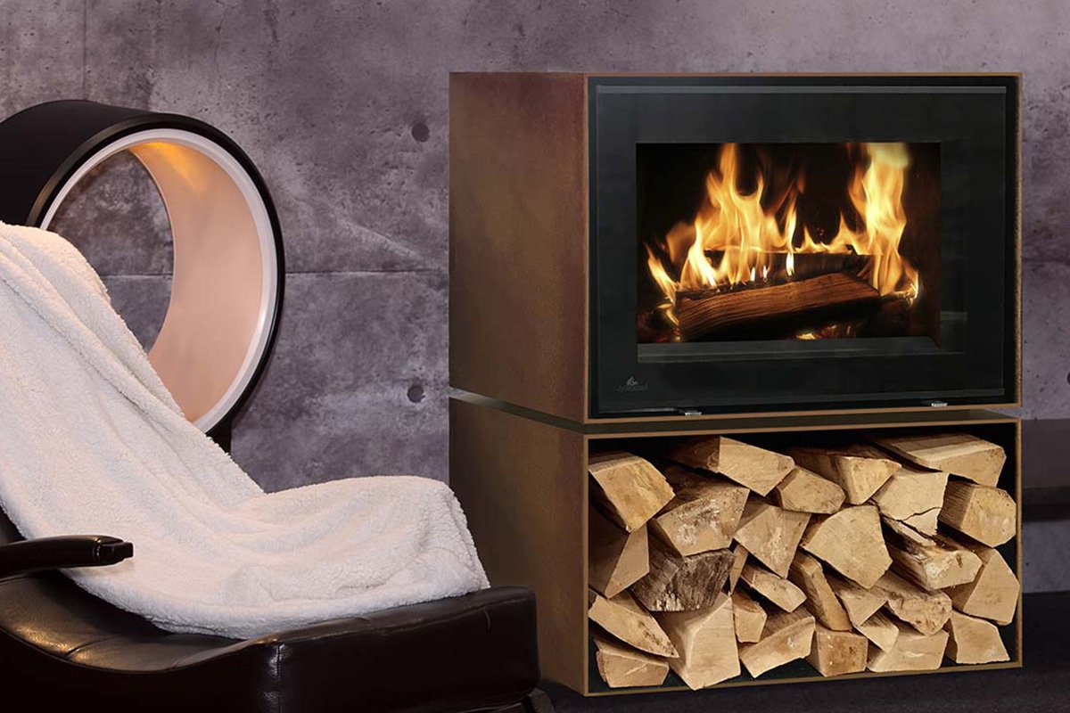 Onder de haard bevindt zich een praktisch houtvak, waar u uw brandhout kunt opbergen. Dit is niet alleen functioneel, maar voegt ook een visueel aantrekkelijke en stijlvolle touch toe aan uw interieur.