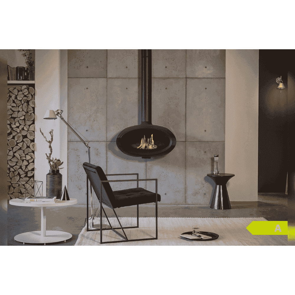 Door het feit dat hij opgehangen wordt, ontstaat er meer ruimte, met name onder de haard. Deze kachel zorgt voor een prachtig vlammenbeeld. Door de drie ruiten, is het vuur te bewonderen vanaf drie zijdes.