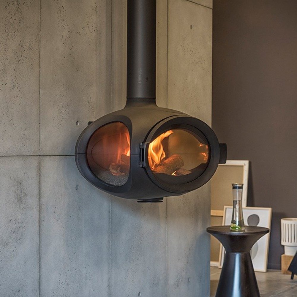 Deze Wanders Mata is een ovale hangende houtkachel. Dat geeft hem een fraaie uitstraling en een prachtige kachel voor het middelpunt van uw huis.