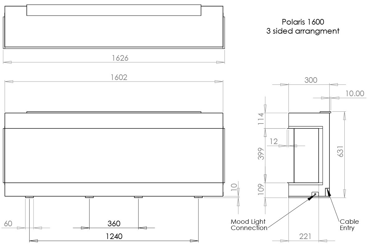 Charlton & Jenrick Polaris 1600 mm wordt geleverd met drie verschillende vuurzichten. Zo kan de haard zowel als front, tweezijdige of driezijdige haard ingebouwd worden. Geheel te integreren naar uw wensen dus!