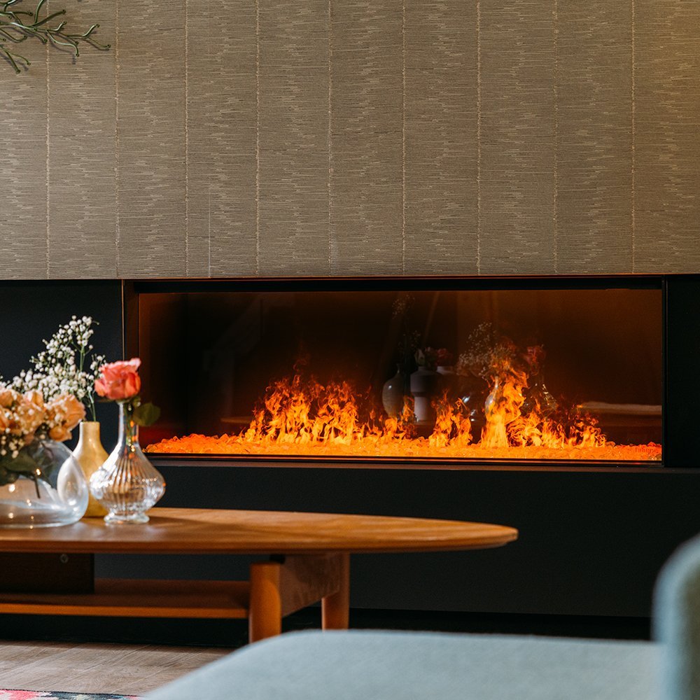 Met de e-MatriX 1300/400 I Linear heeft Faber weer een mooie elektrische haard toegevoegd aan het Faber Linear assortiment. Het vuurbed kunt u opvullen met een houtset, witte kiezels of Acrylic Ice. Zo kunt u de haard helemaal samenstellen naar uw smaak, zonder extra kosten!