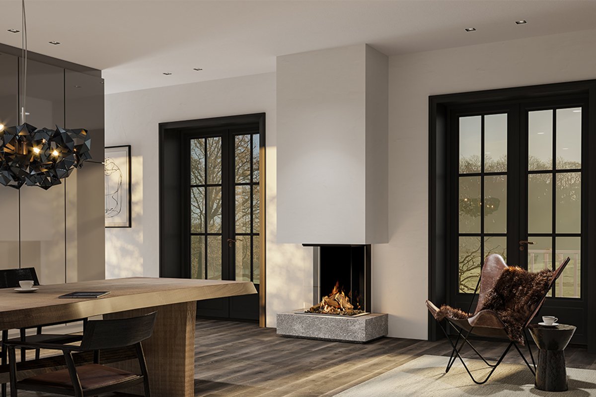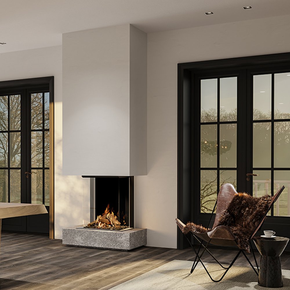 Deze prachtige 3-zijdige haard is, net als de 'normale' Maestro 60, voorzien van de Dynamic Flame Burner. Door de realistische en bedachtzame positionering van de houtstammen, is het vuurbeeld van deze gashaard nagenoeg niet meer van echt vuur te onderscheiden. Het vuur lijkt echt uit het hout te komen!