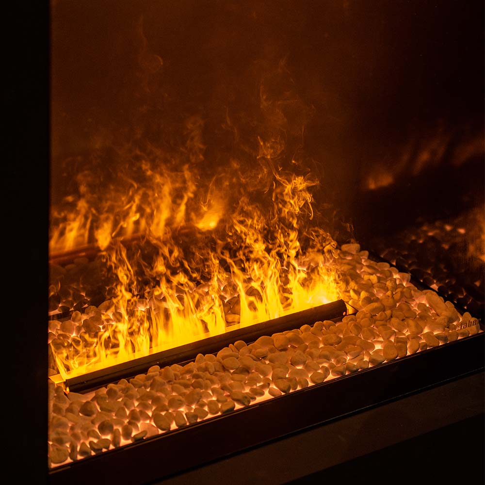 Het vlammenspel is te danken aan de Opti-myst technologie. Dit is een samenspel van opwervelende koudwaternevel en speciale Led-verlichting. De Opti-myst technologie bestaat niet alleen uit een prachtig beeld, maar er komt ook geluid aan te pas. Het geluid van knisperend hout maakt deze haard helemaal af!