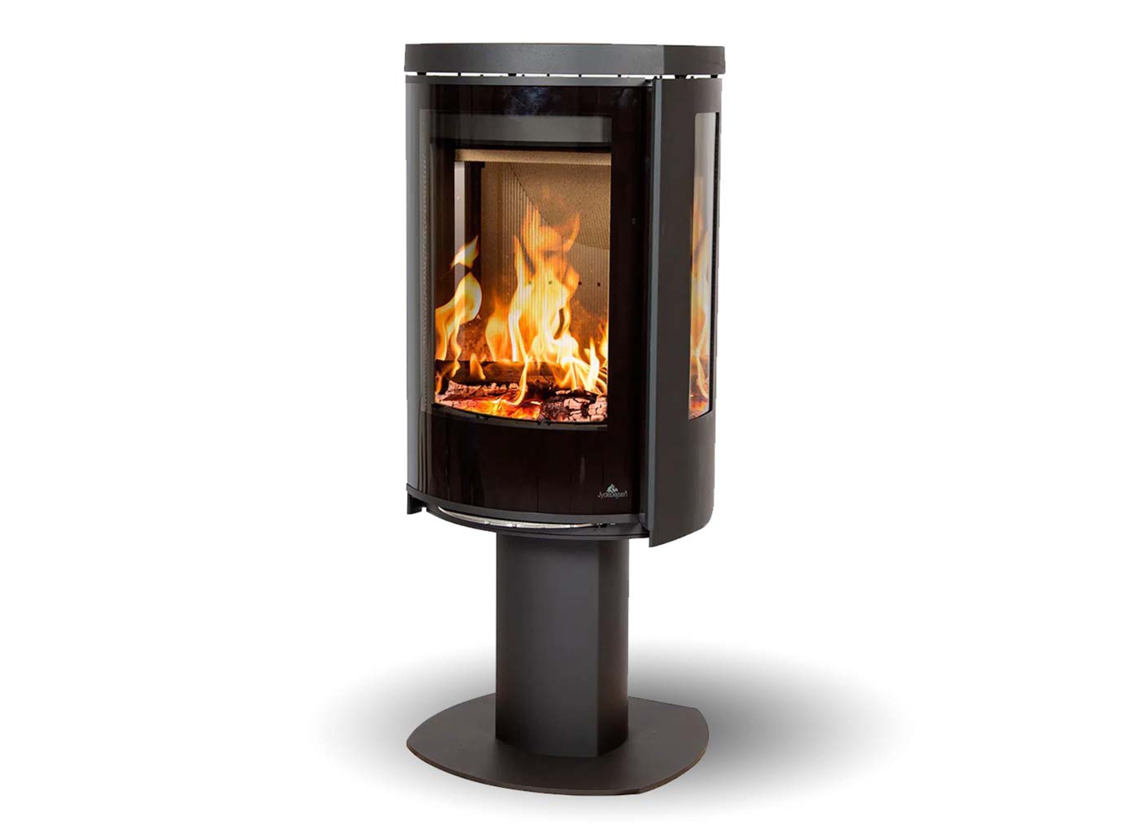 De Jydepejsen Cozy Modern Base met zijruiten is een vrijstaande houtkachel van gietijzer. Dit is het nieuwste model van Jydepejsen met veel unieke eigenschappen. Mooie ronde vormen in combinatie met het gebruik van hoge kwaliteit gietijzer en staal geven de kachel een tijdloze uitstraling. Elk detail is harmonisch in het ontwerp verwerkt. Net als het grote venster dat vloeiend doorloopt in het ronde ontwerp en een prachtig vooraanzicht geeft op het vlammenspel. De Cozy Modern behaalt een warmterendement van wel 80% en heeft op het gebied van uitstoot geweldige resultaten behaald tijdens de keuring.