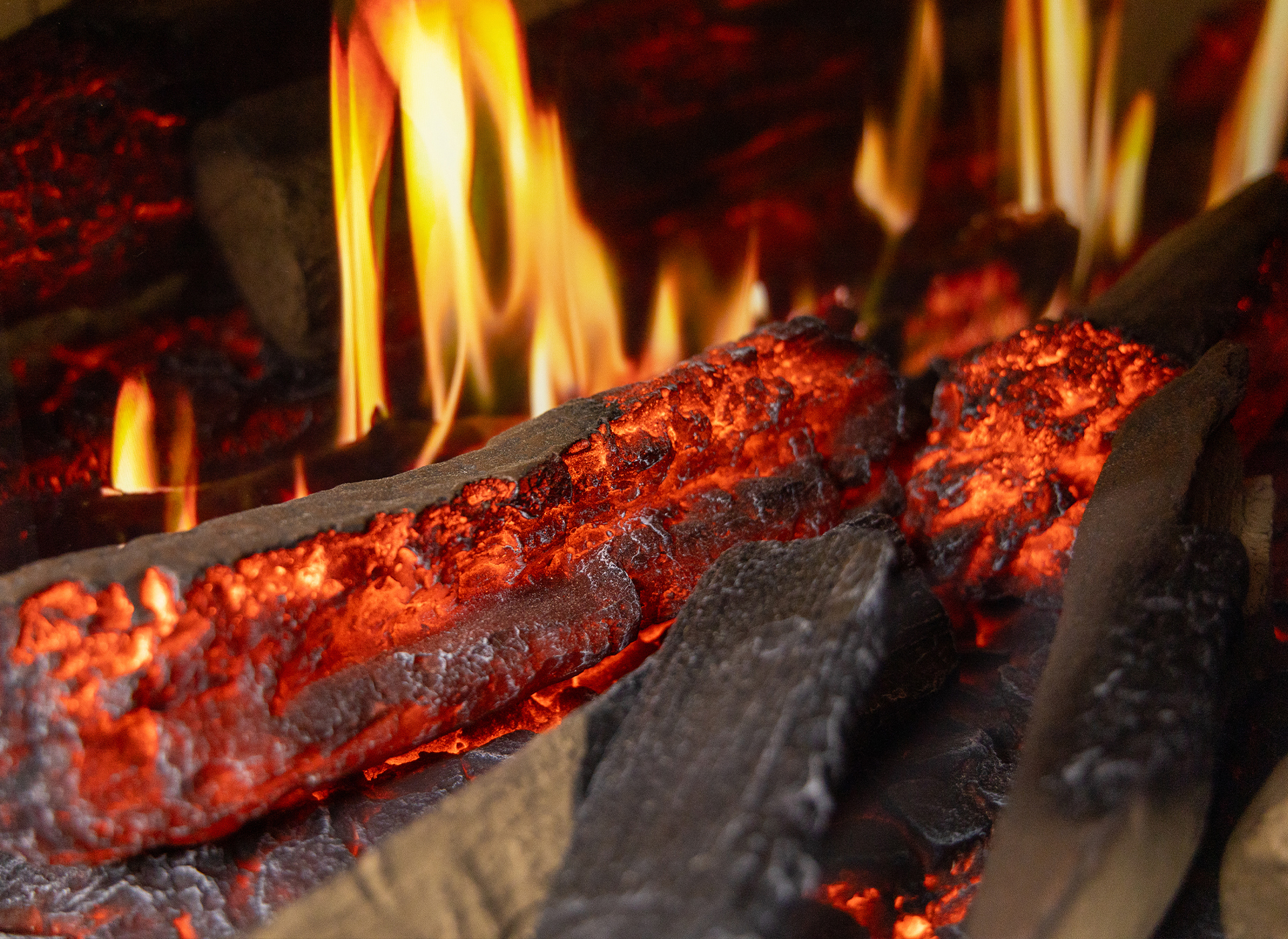 • Realistische houtset met gloeiende LED-lampjes, prachtig, zelfs als het vuur uit is