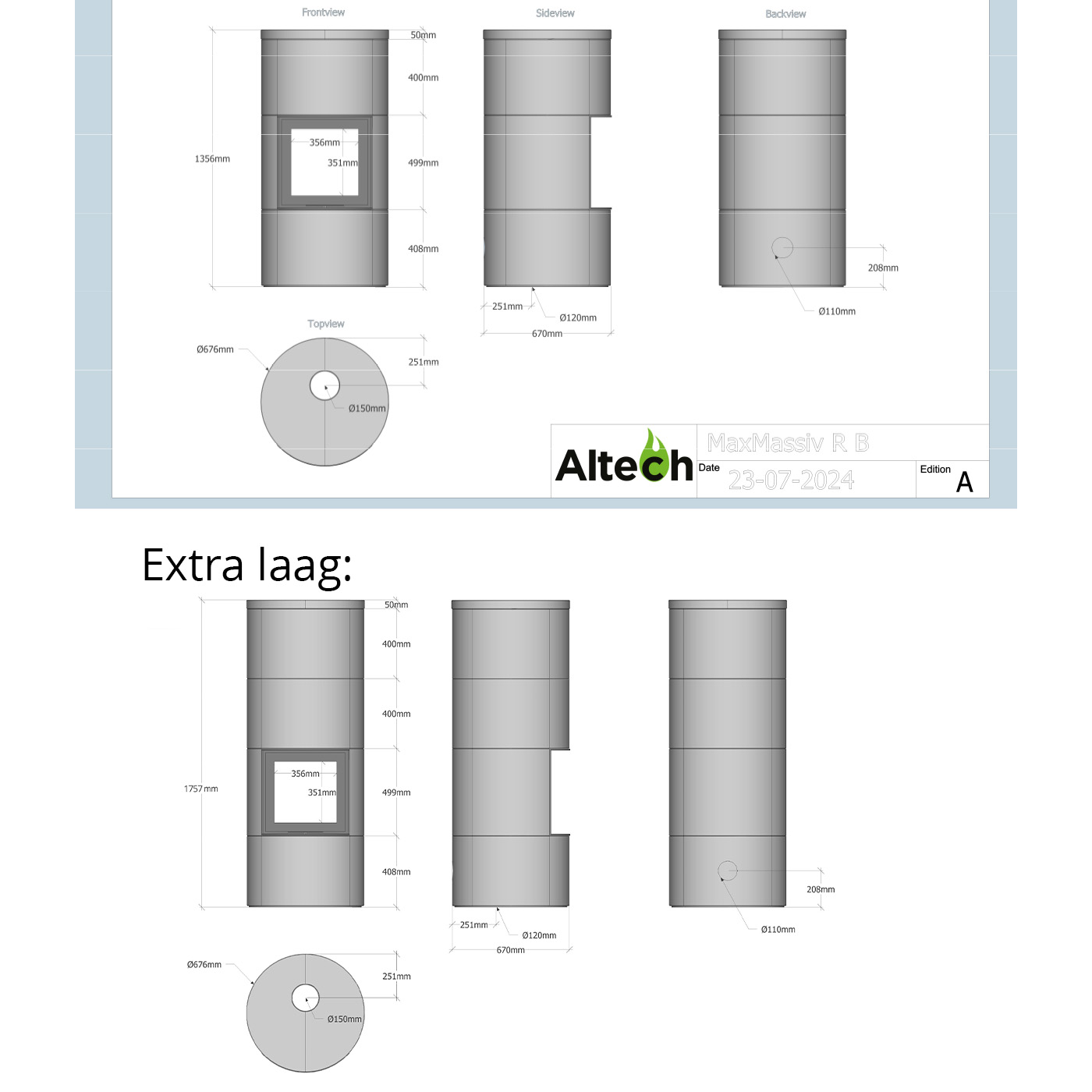 De Altech Max Massiv is niet alleen zuinig, maar ook uiterst gebruiksvriendelijk. Je kunt de kachel naar wens aanpassen, met de mogelijkheid om lagen in hoogte uit te breiden. Voor wie nog meer warmteopslag wenst, is er bovendien de optie om extra accumulatiepakketten toe te voegen. Hierdoor wordt de warmte nog langer vastgehouden en verspreid.