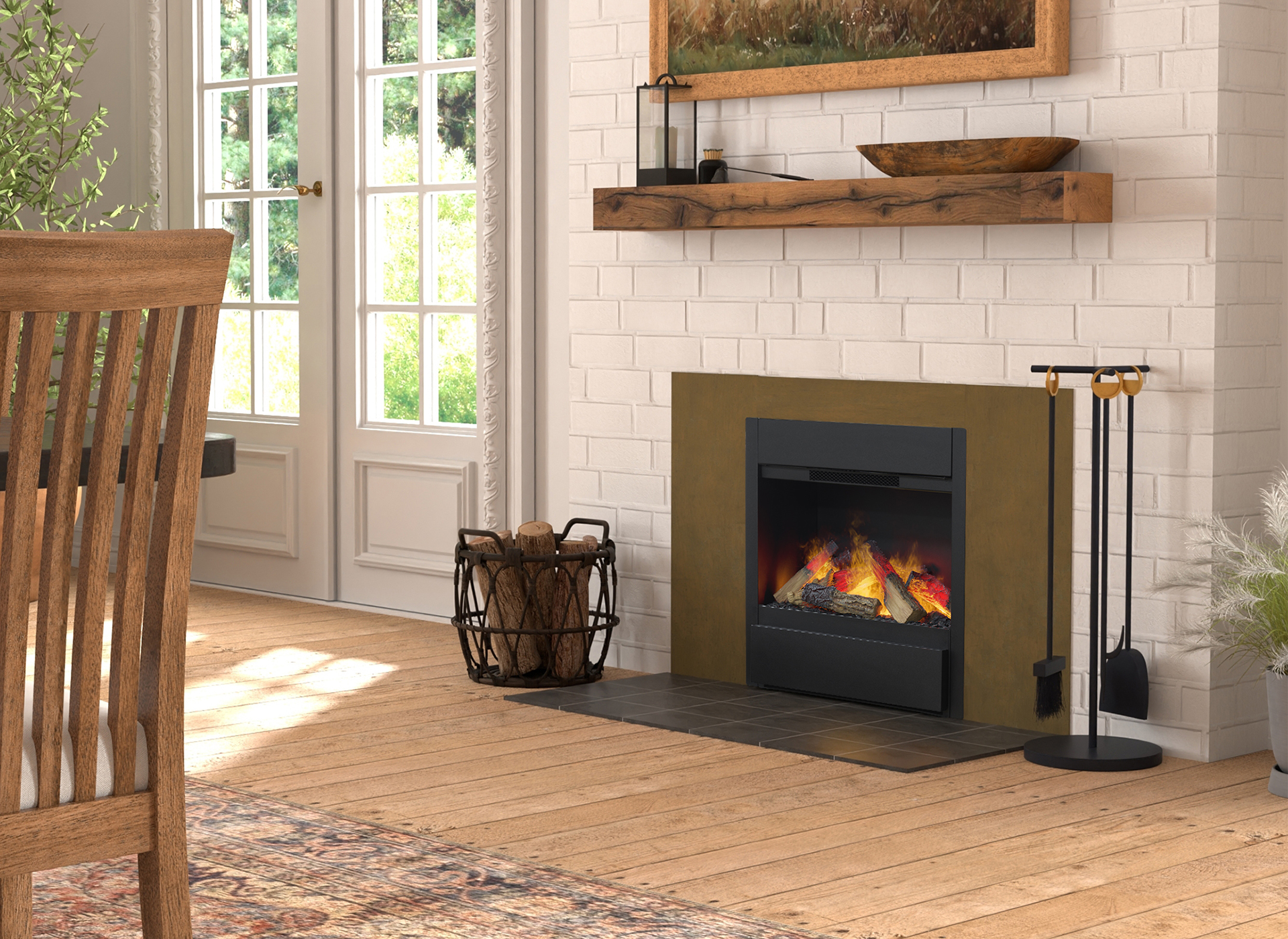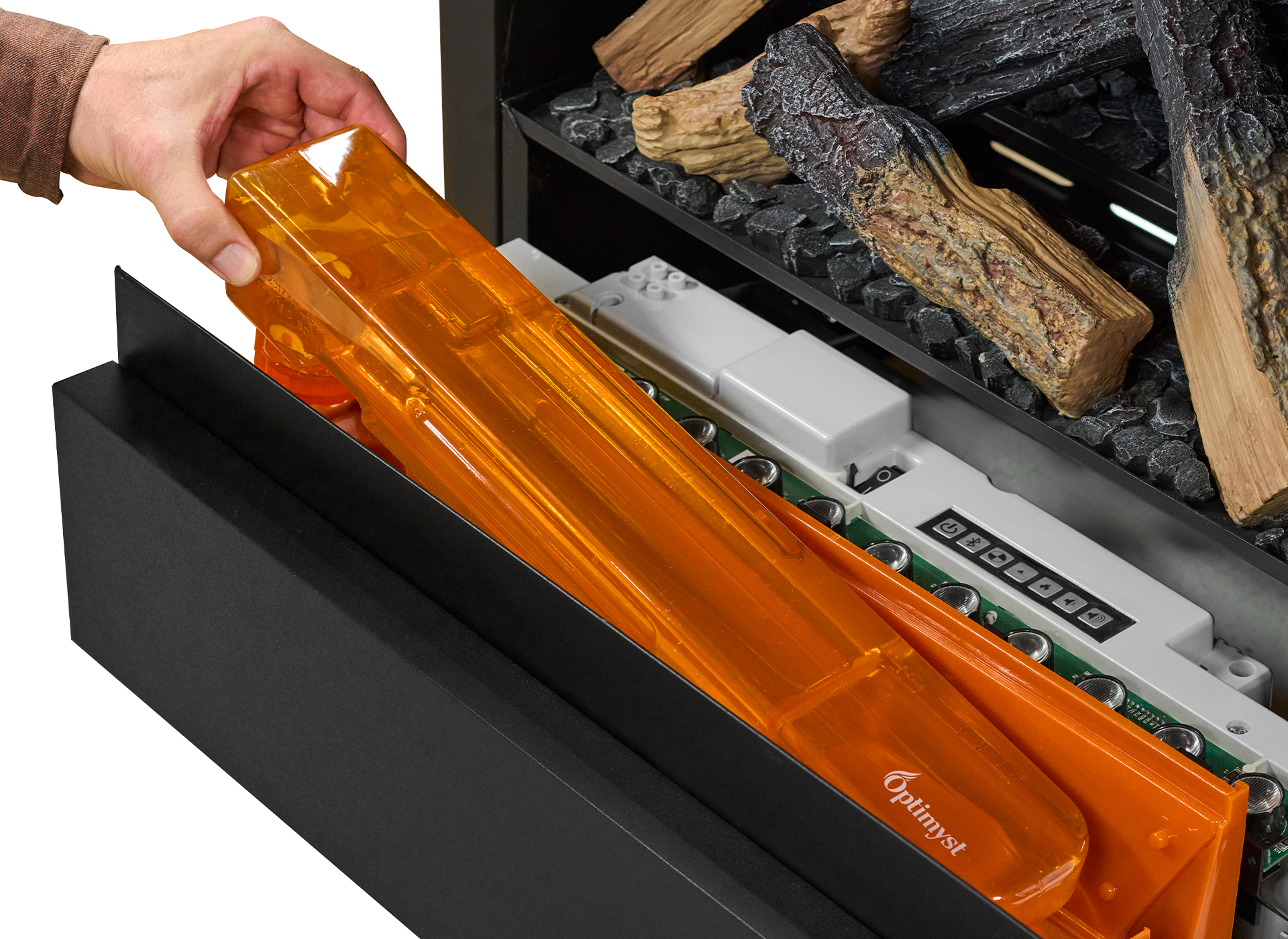 De Albany Multicolour beschikt over een ingebouwde thermostatische verwarming, waarmee je op koude dagen eenvoudig extra warmte toevoegt aan de kamer. Voor de warmere maanden is het vlambeeld ook afzonderlijk te gebruiken, zodat je het hele jaar door kunt genieten van sfeer zonder verwarming. De vaste houtset geeft een authentieke uitstraling en zorgt voor direct gebruiksgemak. Het waterreservoir, dat 8 tot 10 uur meegaat, is eenvoudig bij te vullen dankzij het slimme ladesysteem aan de voorzijde.